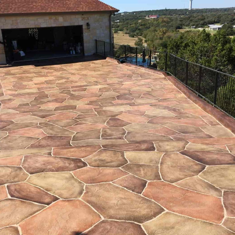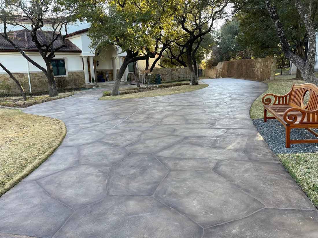 Most resurfaced driveways in Austin, San Antonio, and Dallas run between $6 and $10 per square foot. The price depends less on the pattern you choose and more on the prep work and sealant. Flagstone or Roman stone patterns don’t cost extra, but something tedious like a brick pattern will add time and cost. You’ll also pay more if you upgrade to a polyaspartic sealant instead of a standard concrete sealer. The biggest cost factor is usually the prep, removing old coatings or fixing failing concrete adds more work up front but ensures the new finish lasts.