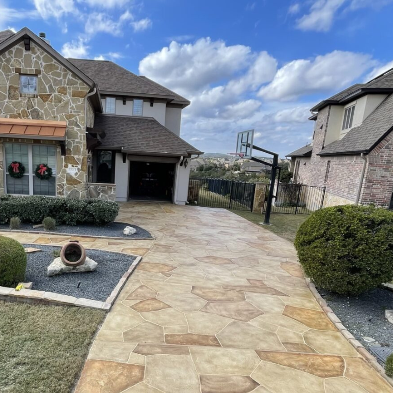 Your driveway is more than a place to park — it sets the first impression of your home. At Texas Premier Coat Resurfacing, we repair and resurface concrete with custom overlays that add curb appeal, improve safety, and last through the tough Texas climate. Whether you’re in Austin, San Antonio, or Dallas, our handcrafted finishes can make cracked, stained, or boring driveways look like natural stone and feel brand new.