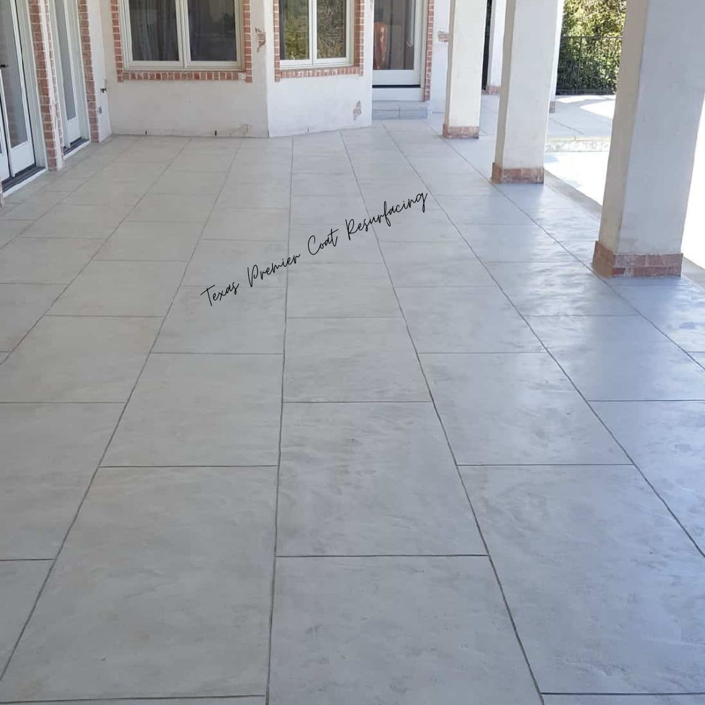 Most resurfaced patios and walkways in Austin, San Antonio, and Dallas cost between $6 and $10 per square foot. Decorative options like flagstone or Roman stone patterns are included at no extra charge, while tedious designs like brick patterns can add to the cost because of the extra labor. The main price changes usually come from prep work — for example, removing an old, failing coating — or from choosing a longer-lasting polyaspartic sealant instead of a standard concrete sealer.