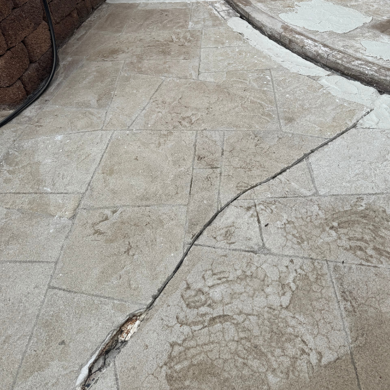 That’s where we stepped in. Instead of starting over, we salvaged the surface and saved the client thousands of dollars. Our team carefully removed the areas that were delaminating, filled and matched the texture, and repaired the cracks with a flexible material designed to handle future movement. Finally, we recolored and sealed the entire overlay to restore its beauty and add long-term protection.